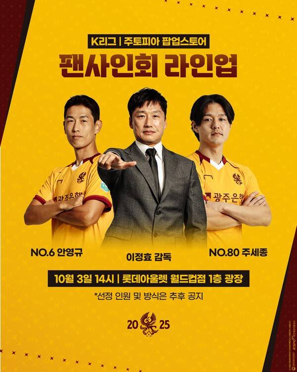 사인회가 열리는 장소는 한국프로축구연맹이 주최하는 'K리그-주토피아 앙코르 팝업스토어(이하 앙코르 팝업스토어)' 현장으로, 지난 7월 서울에서 성황리에 열린 뒤 팬들의 성원에 힘입어 이번에는 광주에서 10월 3일부터 5일까지 3일간 운영된다.