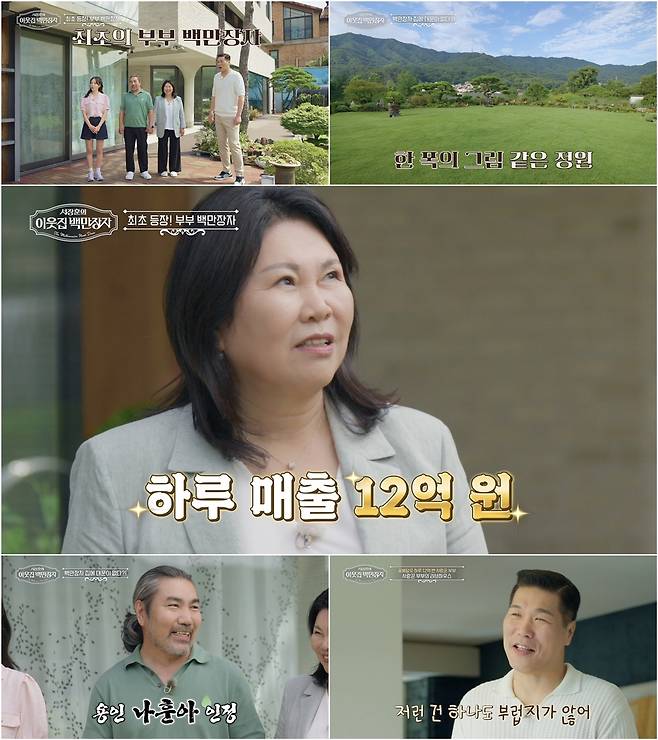 [스포츠조선 이우주 기자] '이웃집 백만장자'가 프로그램 최초로 '부부 백만장자'의 출격을 예고한다. 꽃배달 전문 브랜드를 일궈 '하루 최대 매출 12억 원'을 올린 비결부터, '대지만 250평'에 달하는 초호화 저택까지 이들의 모든 것이 낱낱이 공개될 예정이다.