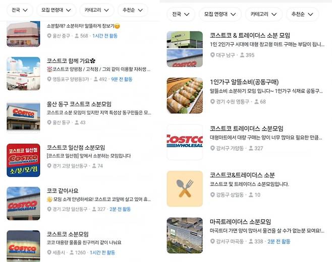 이들 모임의 주 타깃은 코스트코나 이마트 트레이더스 같은 '창고형 마트'다. 3~4명씩 모여 대용량 상품을 구매한 뒤 인원 수대로 용량과 비용을 똑같이 나누는 식이다. 준비물은 소분한 물건을 담아갈 밀폐용기나 비닐봉지 등이면 충분하다.