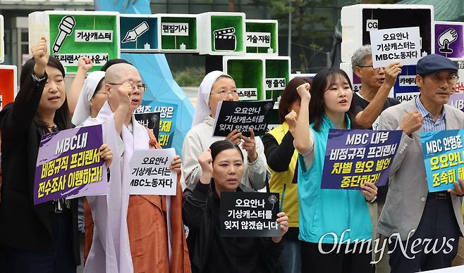 이어 "쿠팡의 블랙리스트를, 대기업의 산재를 고발할 때 (직원들이) 무슨 심정으로 하고 있는지를 왜 MBC 경영진은 보지 않으려고 하나"라며 "MBC가 비정규직 문제에 대해 다른 곳처럼 똑같이 외면한다면 우리는 MBC에 대해 시민으로서 지지를 철회할 것"이라고 경고했다.