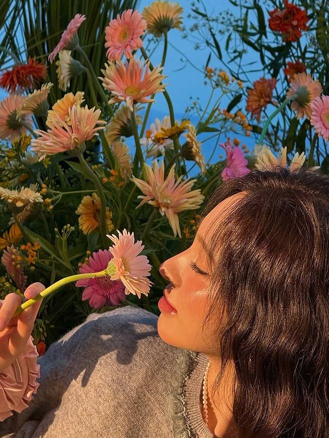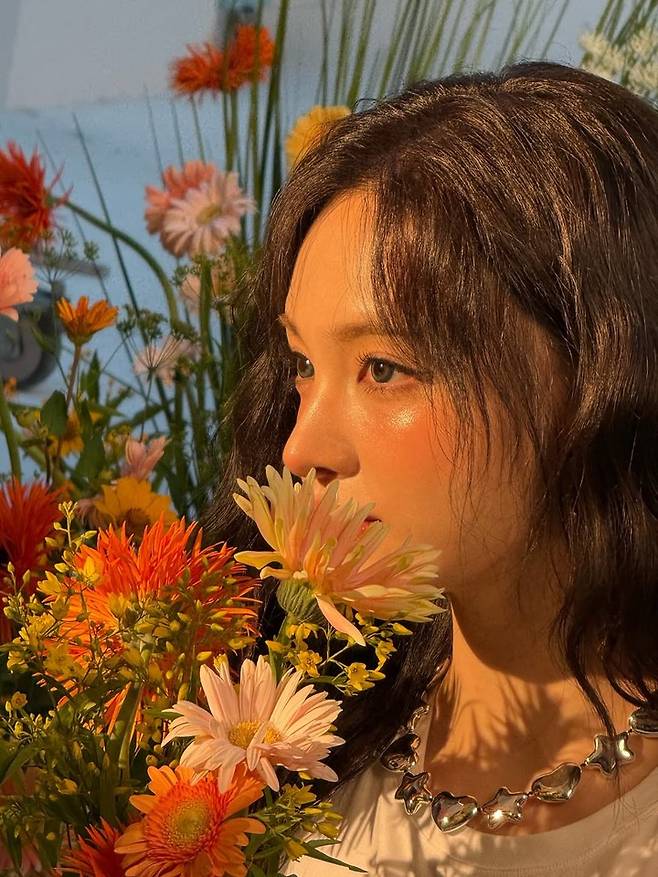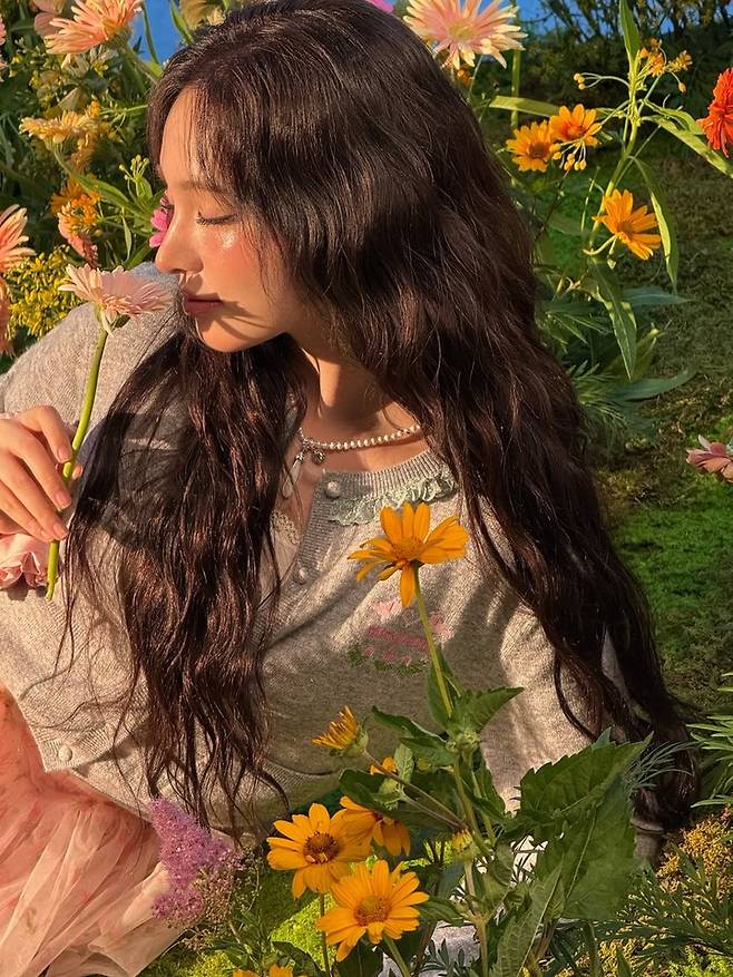 꽃을 곁에 두고 눈을 감은 채 환한 미소를 짓거나, 시선을 돌린 모습에서는 풋풋한 소녀미와 함께 한층 성숙해진 무드가 느껴졌다.