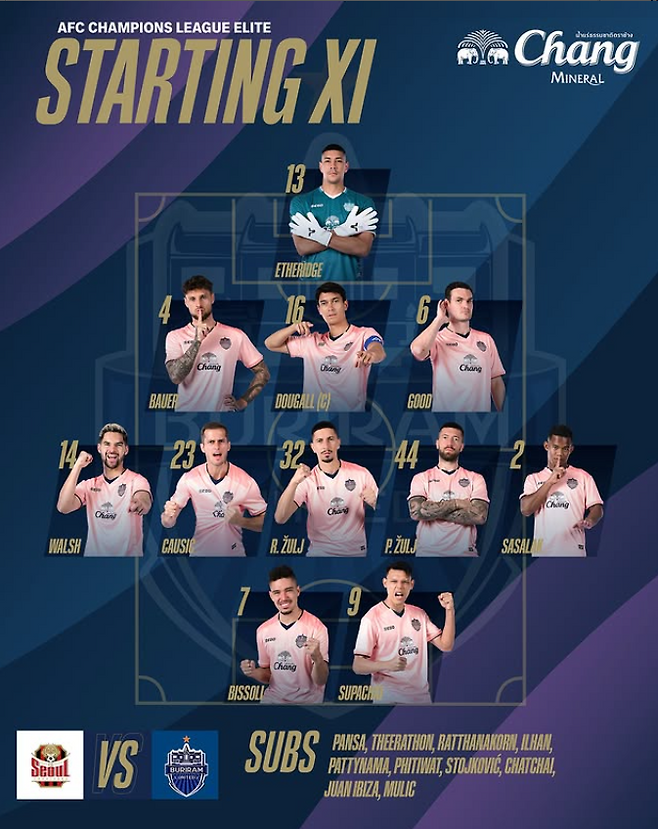 30일 서울월드컵경기장에서 열리는 FC서울과 부리람의 2025-2026시즌 아시아축구연맹(AFC) 챔피언스리그 엘리트(ACLE) 동부그룹 리그 페이즈 2차전을 앞두고 공개된 부리람의 선발 명단만 보면 부리람은 태국이 아닌 다국적 클럽에 가까워 보인다.