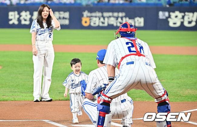 삼성 라이온즈 오승환 아들 서준군이 시구를 하고 있다. 2025.09.30 / foto0307@osen.co.kr
