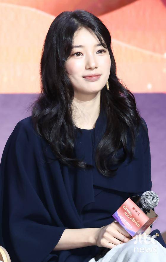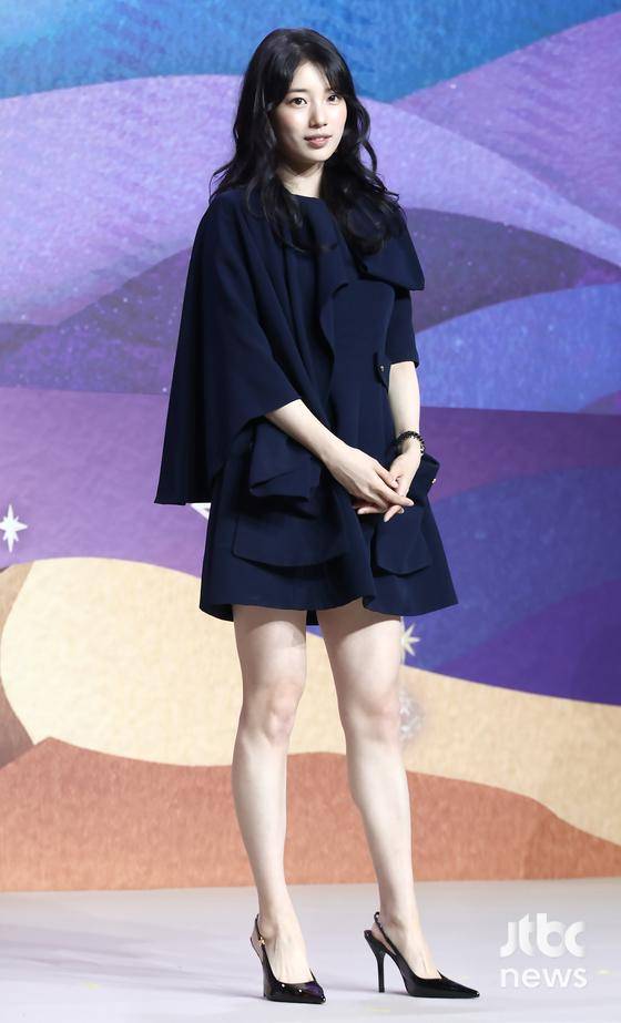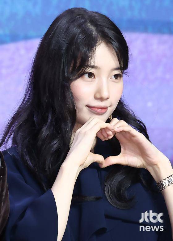 이날 수지는 극 중 '감정 결여 인간' 가영과는 달리 밝고 사랑스러운 모습으로 포토타임에 나섰다. 네이비 컬러의 미니 드레스에 블랙 하이힐을 매치해 우아하면서도 고급스러운 분위기를 더하며 시선을 사로잡았다. 특히 특유의 밝은 미소와 다채로운 하트 포즈로 스포트라이트를 받으며 현장의 분위기를 한층 끌어올렸다.
