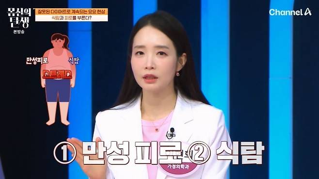 전문의는 "요요 현상이 오면 극심한 피로 상태에 놓이면서 만사가 귀찮게 된다. 이런 상태에선 만성피로에 시달리고, 식탐을 유발한다"라며 살이 잘 찌는 체질로 변한다고 밝혔다.