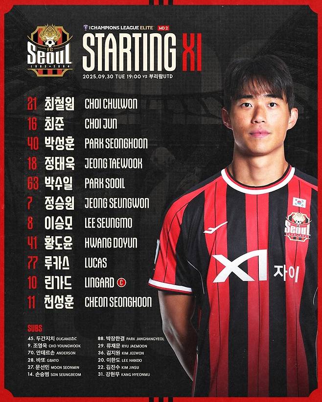 이날 서울은 제시 린가드와 천성훈, 정승원, 루카스 실바, 황도윤, 이승모, 박수일, 박성훈, 정태욱, 최준, 골키퍼 최철원이 선발 출전했다.