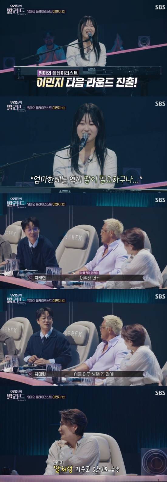 다음 라운드 진출에 성공한 이민지에게 차태현은 "노래를 듣는데, '엄마한테는 딸이 필요하구나' '서로 위로할 수 있는 존재가 필요하구나'라는 생각이 들었다"고 했고, 박경림도 "이 노래 한 곡이 엄마한테 너무 큰 위로가 될 것 같다"면서 미소를 지었다.