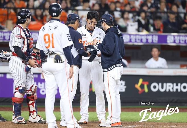 다음타자 최재훈이 볼넷으로 걸어나가면서 무사 1, 2루가 됐고, 심우준이 유격수와 3루수 사이를 빠져나가는 안타를 치면서 한화는 만루 찬스까지 잡았다.