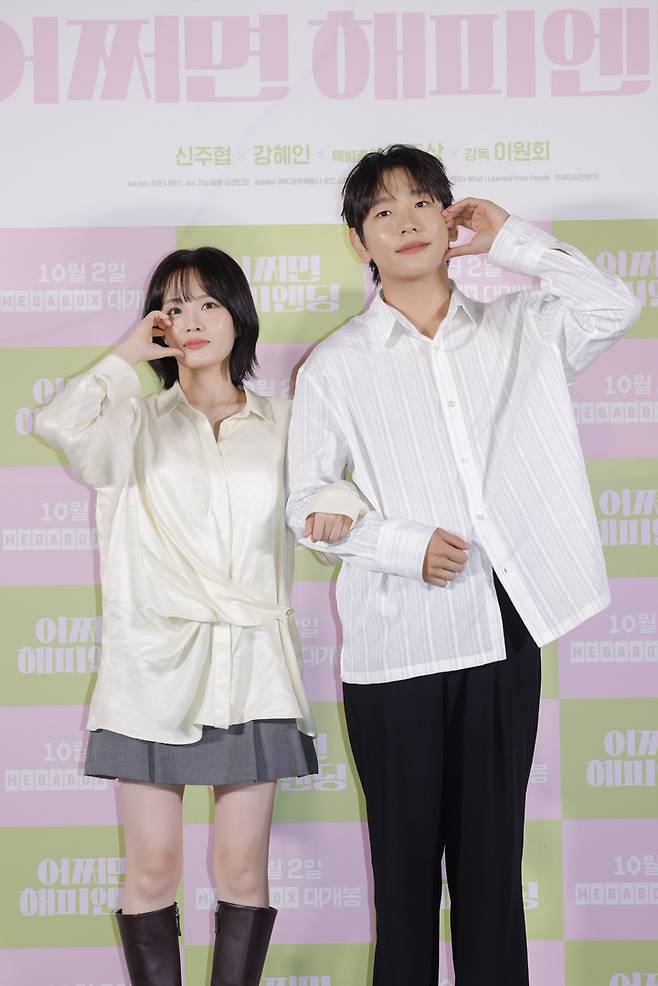30일 서울 성동구 메가박스 성수점에서 영화 '어쩌면 해피엔딩' 언론배급시사회 및 기자간담회가 열렸다. 이날은 이원회 감독과 배우 신주협, 강혜인이 참석했다.