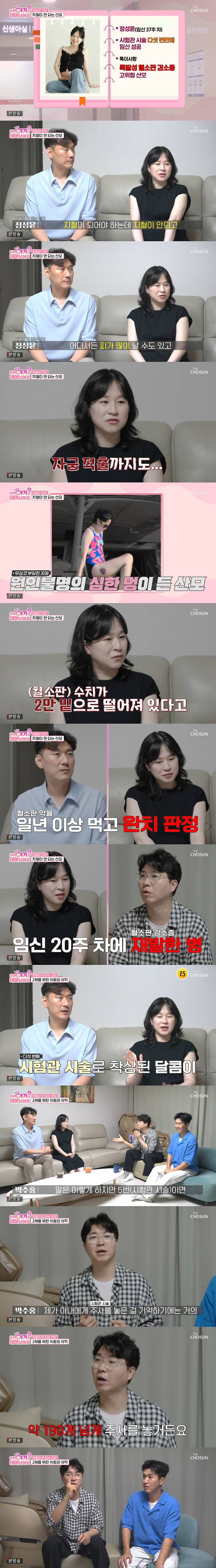 30일 방송되는 TV CHOSUN '우리 아기가 또 태어났어요'에서는 박수홍이 새롭게 합류한 '새신랑' 김종민과 함께 지난 파일럿에서 만난 적이 있는 임신 37주 차로 출산을 앞둔 고위험 산모와 만났다.
