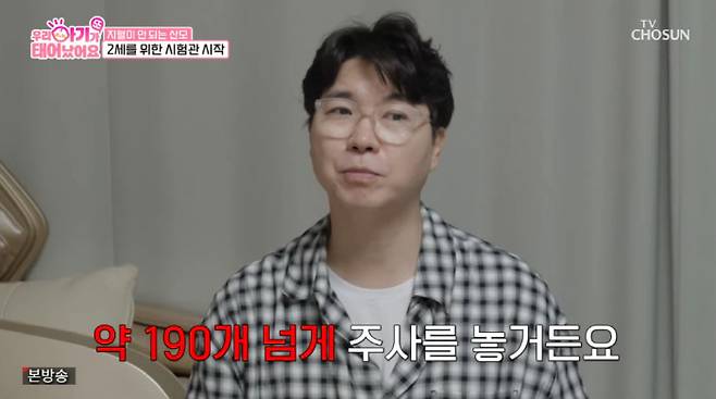 박수홍은 "시험관 1차 시도할 때"라고 했고, 김종민은 "1차에 주사를 190개 놓는다는 거냐"며 놀라 재차 물었다.
