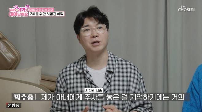 박수홍이 "아내가 시험관 1차 시도할 때 190개 넘게 주사를 놓았다"고 밝혔다.