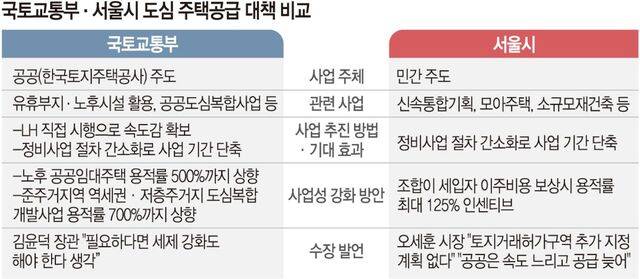 정부는 공공 주도의 주택공급 확대를, 서울시는 민간 주도의 정비사업 확대를 내놓으면서다.
