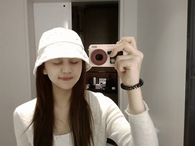 공개된 사진 속 엄지는 화이트 톤의 나시와 가디건, 버킷햇 등을 활용해 청순하면서도 내추럴한 스타일을 연출했다.