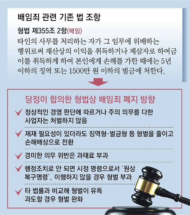 - [사설]72년 만에 배임죄 폐지… 불합리한 경제형벌 확 줄여야