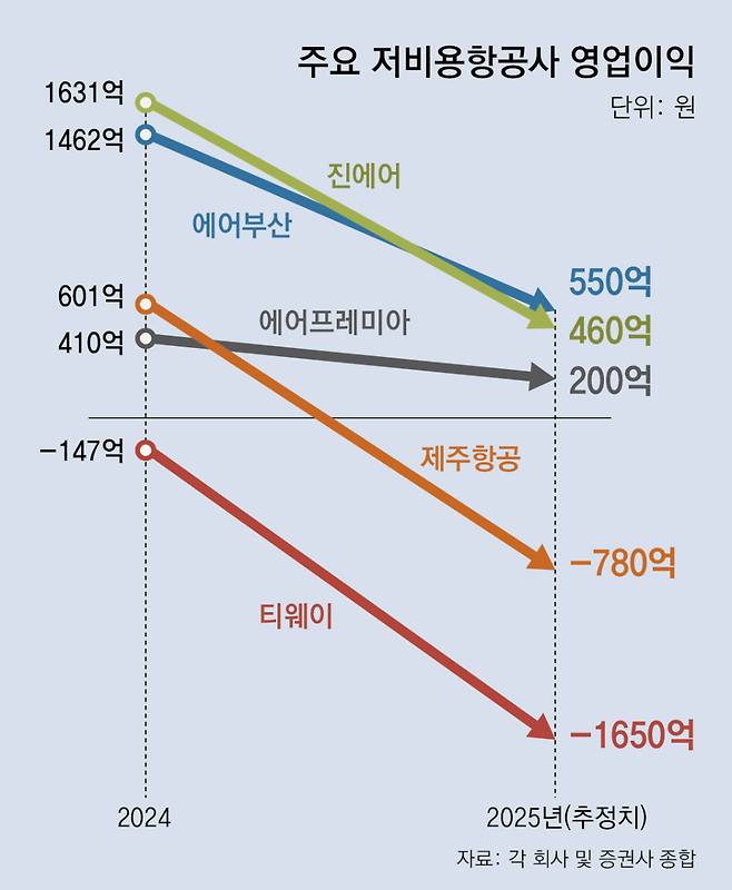 문제는 이 같은 이벤트가 수익으로 이어지기 어렵다는 점이다. 업계에서는 오히려 이 같은 출혈 이벤트가 사활을 건 ‘치킨 게임’이 되고 있다고 본다. 한 항공업계 관계자는 “LCC 9개는 한국 항공산업에서 수요를 넘어선 규모”라며 “경쟁력 낮은 LCC들의 ‘정리’를 피할 수 없는 상황이 다가오고 있다”고 내다봤다.