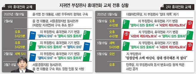 대법원 윤리감사관실(윤감실)이 지귀연 부장판사의 접대 의혹 조사를 거친 뒤 "직무관련성이 없다"고 발표한 날, 지 부장판사가 접대 의혹이 불거진 직후 휴대전화를 교체한 사실이 드러났다.