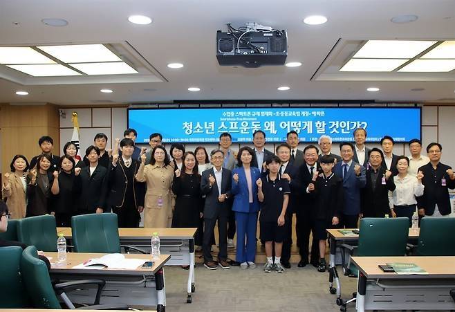 | ▲ 국회 토론회 지난 24일 오후 서울 여의도 국회의원회관 제3세미나실에서 열린 ‘청소년 스마트폰 프리 운동, 왜 어떻게 할 것인가?’ 토론회 참석자들이 기념촬영을 하고 있다. |