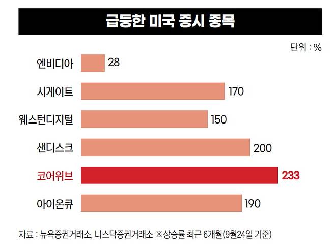 주인공은 하드디스크 드라이브(HDD)를 생산하는 저장장치 기업이다. 시게이트는 올해 들어 약 170% 뛰었고 웨스턴디지털(약 150%), 샌디스크(약 200%) 역시 세 자릿수 이상 폭등하며 새로운 주도주란 평가를 받고 있다.