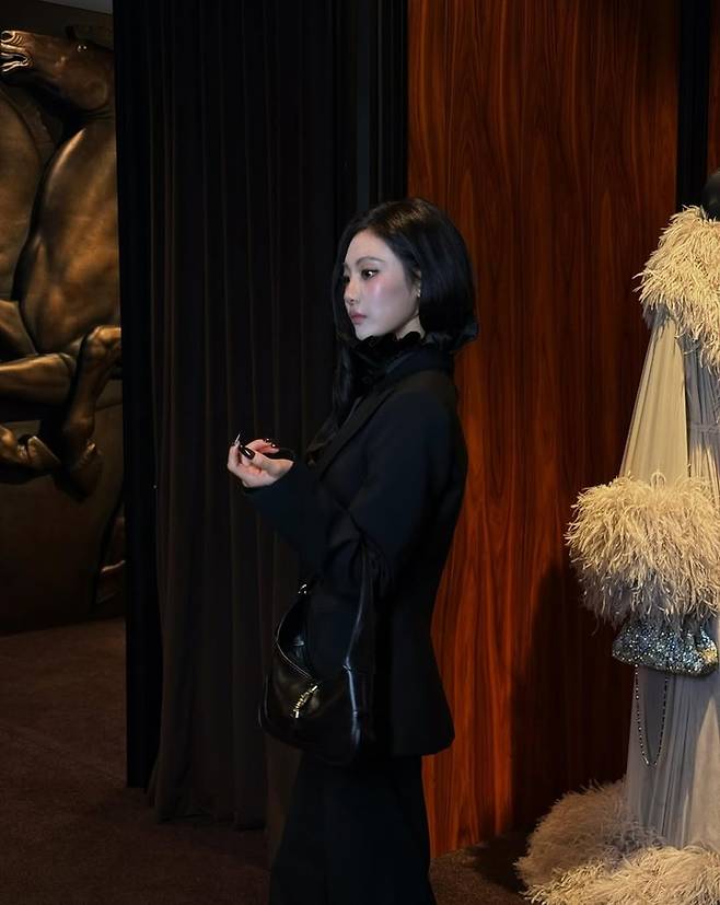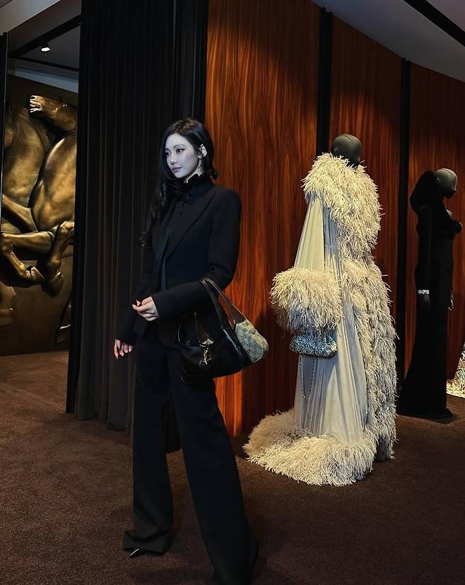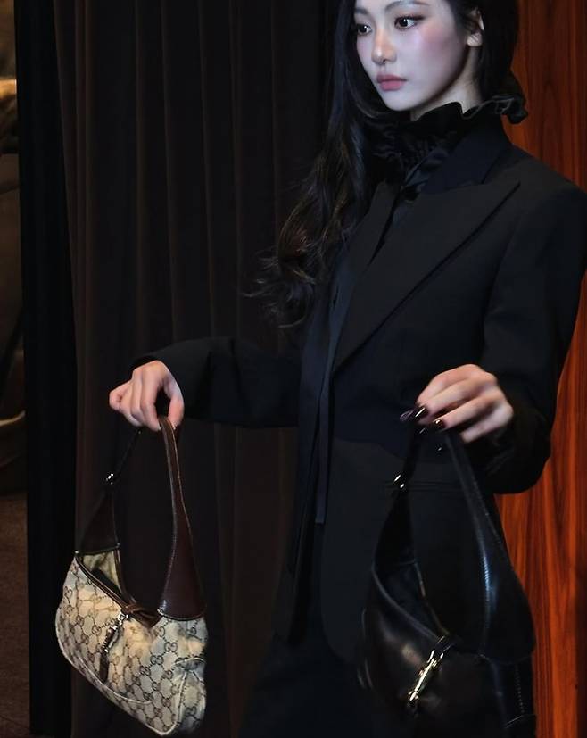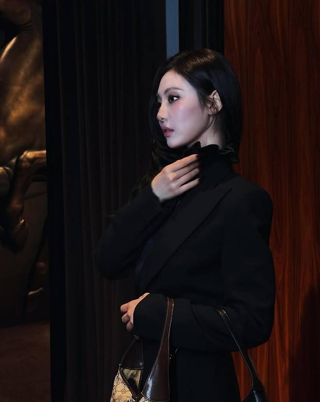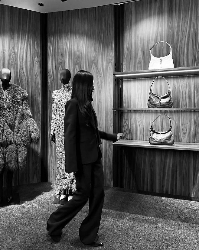 특히 블랙 컬러의 올 매치룩은 닝닝의 뚜렷한 이목구비와 도도한 아우라를 더욱 강조했다. 고급스러운 매장 공간 속에서 여유롭게 포즈를 취하는 닝닝의 모습은 럭셔리 브랜드 화보를 방불케 한다.