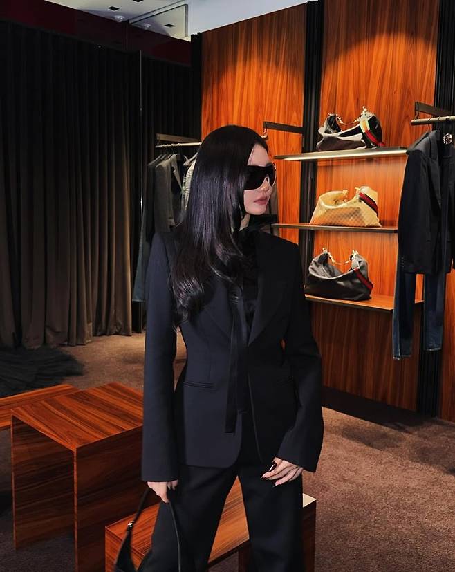 블랙 수트에 선글라스 매치, 파격적인 걸크러시 매력