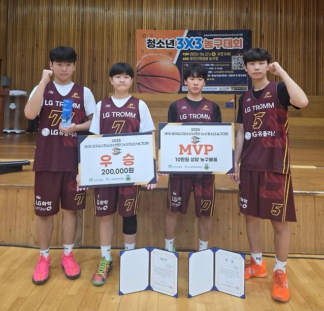 김태훈 원장의 광주 맨투맨 농구교실(광주 LG 세이커스)은 지난 27일 대성초등학교 체육관에서 열린 ‘2025 광주광역시 남구 청소년 3X3 농구대회’ 중등부에서 우승컵을 들어올렸다.