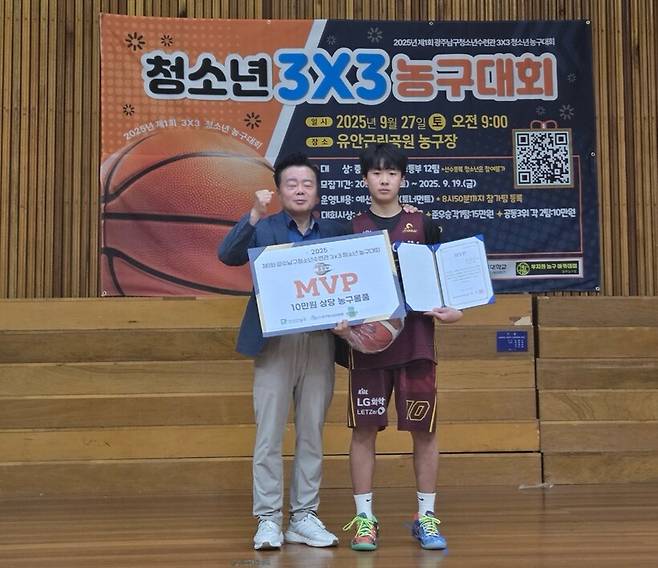 김태훈 원장의 광주 맨투맨 농구교실(광주 LG 세이커스)은 지난 27일 대성초등학교 체육관에서 열린 '2025 광주광역시 남구 청소년 3X3 농구대회' 중등부에서 우승컵을 들어올렸다.