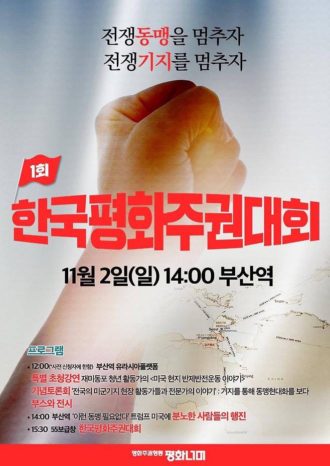 한국평화주권대회에 대해 이들은 "자주와 평화주권을 되찾기 위한, 본격적인 싸움의 시작을 알리는 대회이다. 위대한 민중항쟁의 역사를 가진 우리는 지난 윤석열 퇴진투쟁을 통해 또다시 '과거가 현재를 돕는다'는 것을 배웠다"라며 "이제 종속적인 한미동맹과 결별하고, 평화와 주권을 위해 투쟁해왔던 지난 72년간의 힘을 바탕으로 새로운 역사를 써 나가고자 한다"라고 밝혔다.