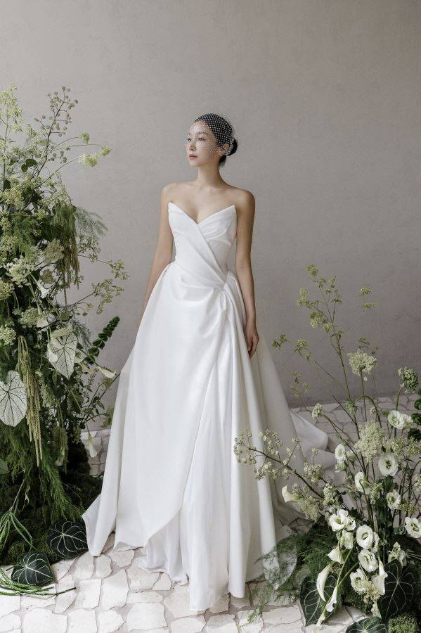 이와 함께 웨딩사진도 공개됐다. 사진 속 김옥빈은 새하얀 드레스를 입고 무결점 비주얼을 자랑하고 있다. 특히 그는 어깨라인이 강조되는 A라인 드레스를 착용, 우아하면서도 클래식한 분위기를 자아냈다. 헤드피스를 매치해 모던함도 배가시켰다.