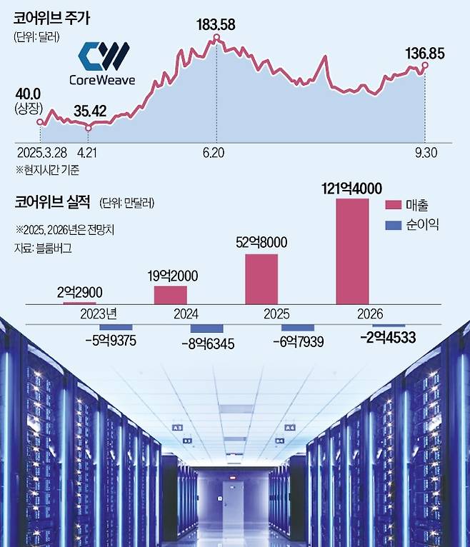 ‘인공지능(AI) 열풍’의 대표 수혜주로 꼽히는 미국 AI 클라우드 컴퓨팅 업체 코어위브가 오픈AI에 이어 메타와도 대규모 계약을 체결했다는 소식에 주목받고 있다. 특정 기업에만 집중된 매출 구조에서 벗어나 고객 다변화로 성장할 것이란 기대가 커졌기 때문이다. 폭발적인 AI 수요를 발판 삼아 코어위브가 막대한 자본지출, 특정 고객 집중이라는 한계를 딛고 향후 이익을 낼 수 있을지가 투자 포인트로 꼽힌다.