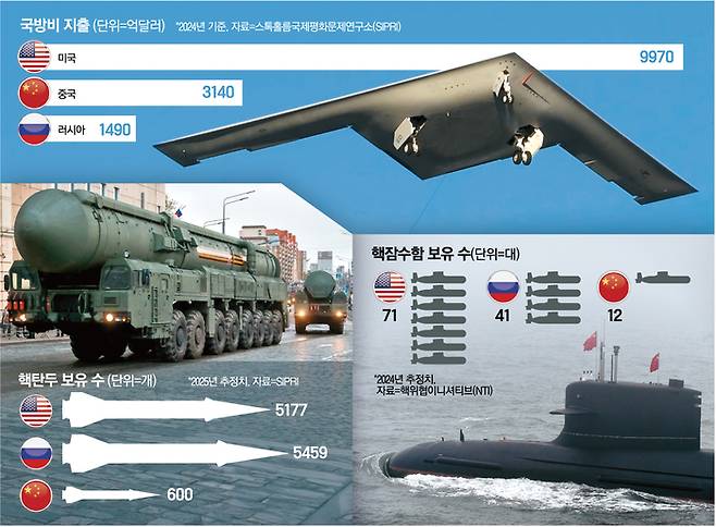 중국은 최근 1년 새 핵탄두 보유 수를 100기가량 늘린 것으로 추정된다. 스톡홀름국제평화문제연구소(SIPRI)의 2025년 연감에 따르면 중국은 총 600여 기의 핵탄두를 보유하고 있는 것으로 추산됐다. 1년 전 500여 기였던 핵탄두가 20%가량 늘어난 셈이다.