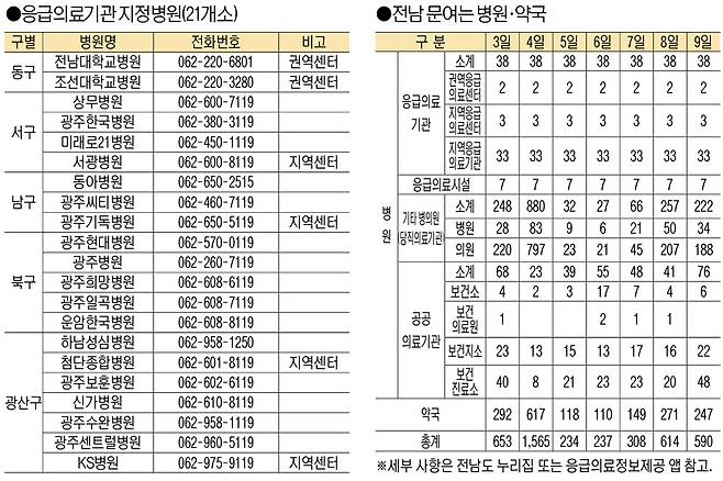 연휴 기간에도 공공심야·달빛어린이병원인 광주기독병원은 자정까지, 광주센트럴병원은 오후 11시까지, 아이맘아동병원·북구미래아동병원은 오후 6시까지 운영한다.