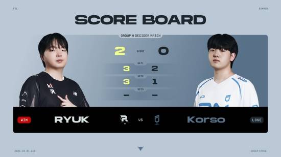 후반 중반부터 무섭게 추격전을 펼친 korso. 하지만 Ryuk는 동점 상황을 허용하지 않았고, 3대2로 1세트 승리를 가져갔다.
