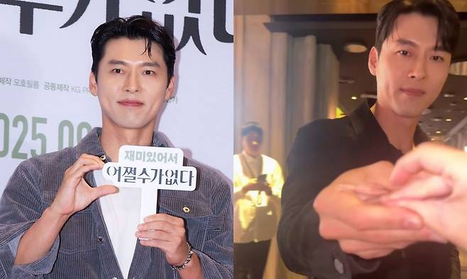 배우 현빈이 손하트 요청에 철벽 방어했다.