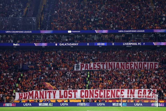 "가자 지구에서 인류는 양심을 잃었다" 리버풀 잡은 갈라타사라이 팬들의 정치 구호…UEFA 징계 불가피?