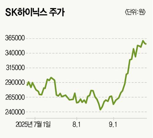 올해 SK하이닉스는 국내 증시에서 가장 뜨거운 종목 중 하나다. 올해 주가 상승률이 100%를 넘는다. SK하이닉스는 9월 24일 35만7500원에 거래를 마쳤다. 올 1월 2일 SK하이닉스 종가(17만1200원)와 비교하면 2배 이상 높은 수준이다. 9월 한 달로 범위를 좁혀도 상승세가 가파르다. 9월 1일부터 24일까지 SK하이닉스 주가는 약 40% 상승했다. 코스피와 비교하면 차이가 크다. 9월 24일 기준 코스피는 올해 45%, 9월 한 달간 10% 올랐다.