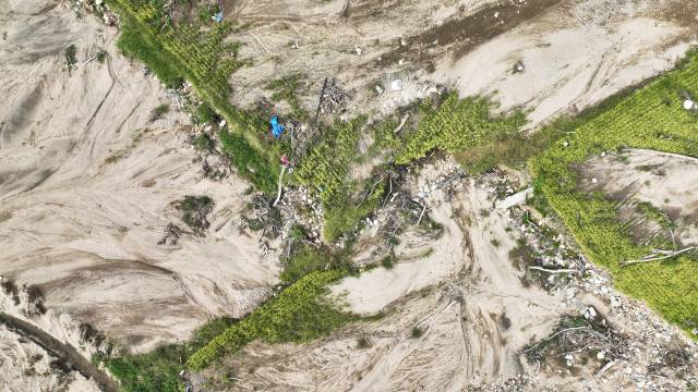 산청에도 추석과 함께 추수의 시기가 왔다. 내수마을 앞 개울을 따라 길게 이어진 논에서도 벼가 노랗게 익어 고개를 푹 숙였다. 그러나 논 대부분이 산사태가 몰고 온 흙과 모래가 뒤덮여 있었고, 한쪽엔 휩쓸려 온 나무들이 누워 있었다. 수확할 시기임에도 아수라장으로 남아 있는 논을 보며 농민은 시름한다.