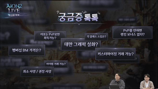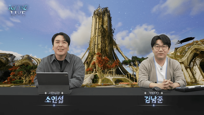 1일 엔씨소프트는는 4번째 아이온2 공식 라이브 방송 '아이온투나잇'을 진행했다. 방송에는 소인섭 엔씨 아이온2 사업실장과 김남준 엔씨 아이온2 개발 PD가 출연했다.