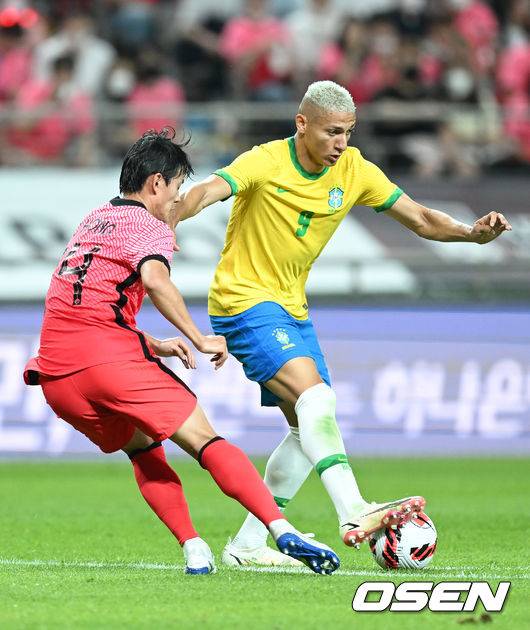 손흥민의 토트넘 동료 히샬리송이 전반 7분 만에 선제골을 뽑았다. 네이마르는 페널티킥으로만 두 골을 더 넣었다. 쿠티뉴와 제주스까지 터지면서 한국이 완패를 당했다. 한국은 전반 31분 터진 황의조의 골로 영패를 면했다.