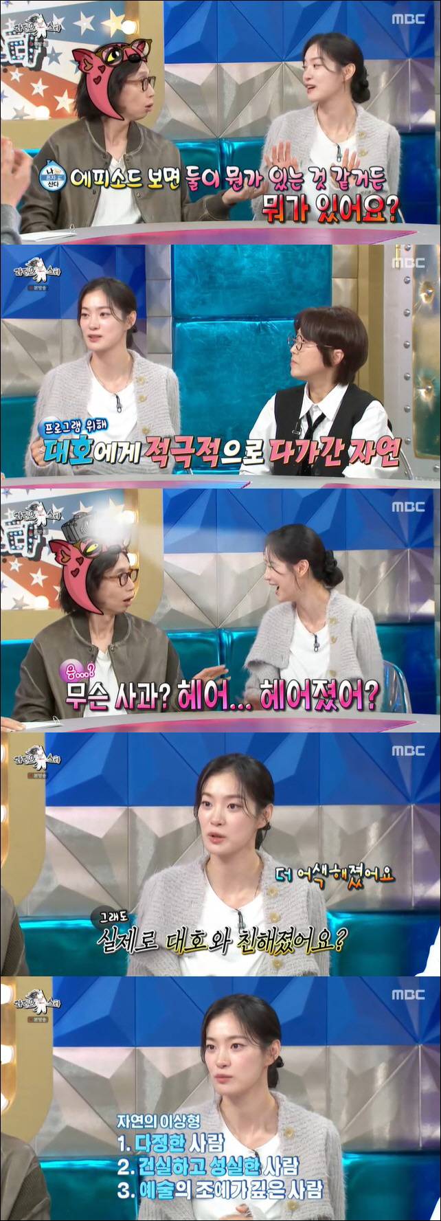 이에 김구라는 열애설에 직접 맞서자며 옥자연에게 이상형을 물었다. 옥자연이 "예술에 조예가 깊고 다정하고 성실한 사람"이라고 이상형을 나열하자 김구라는 "김대호는 아니"라고 선을 그어 웃음을 안겼다.