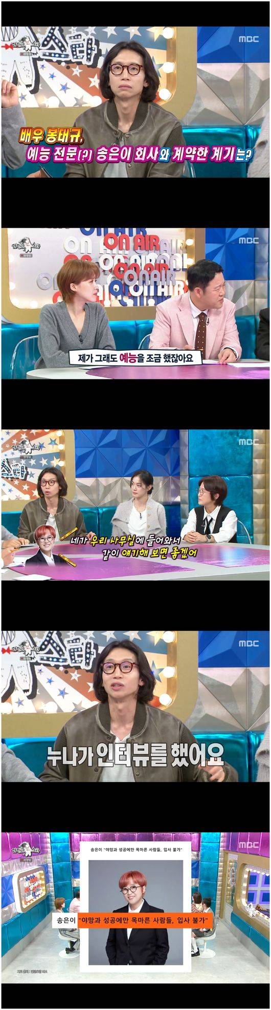 '라디오스타' 배우 봉태규가 송은이 소속사로 이적한 이유를 밝혔다.