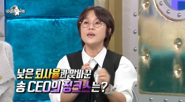 또 송은이는 "회사에 여직원들이 많은데 책상에 좋아하는 연예인 사진을 붙여놓는다. 녹화하다 그 친구를 만나면 사인을 받아준다. 제가 사인 받아준 직원들은 다 퇴사했더라"라고 토로했다.