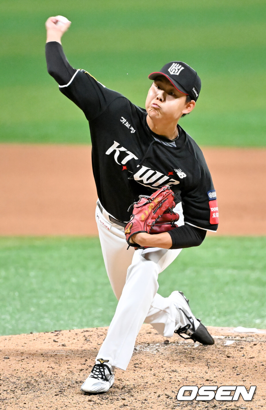 정신을 차릴 틈도 없이 또 오선우에게 중전적시타를 맞고 3점째를 허용했다. 한준수에게마저 중전안타를 내주고 또 무사 1,2루 위기에 몰렸다. 5타자 연속 안타였다. 이미 빅이닝을 허용했고 추가실점이면 KT에게는 절망적인 상황이 찾아올 수 있었다. 그런 위기 의식을 느꼈던 탓인지 힘을 냈다.