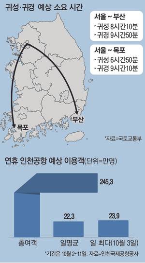 귀성 5일· 귀경 6일 최대로 혼잡할듯