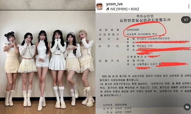 스타쉽이 아이브 팀명과 유사한 이름의 상표에 등록취소 심판을 걸었다.