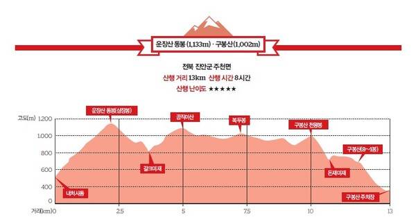 구간별 운장산~구봉산 난이도