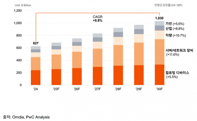 PwC "2030년 반도체 시장 1兆 달러로…서버·차량용 급성장"