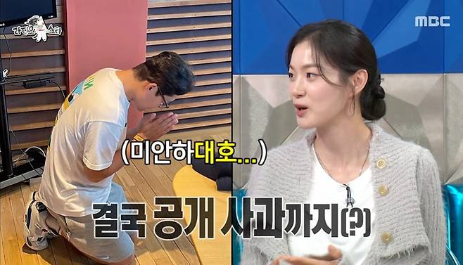 결국 김대호가 라디오에서 무릎을 꿇고 공개 사과까지 한 것에 대해 그는 "사전에 상의 없이 좀. 방송 욕심이 아니었나 싶다"고 추측했다.