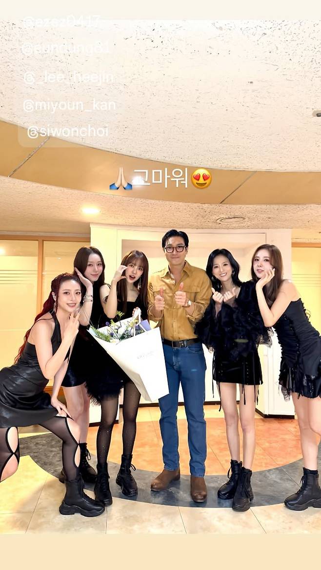 1일 윤은혜는 자신의 계정에 최시원을 향한 고마움을 드러냈다. 공개된 사진 속 최시원은 베이비복스 멤버들과 인증샷을 찍고 있다.