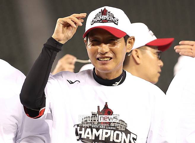 LG 염경엽 감독이 마침내 샴페인을 터뜨렸다.